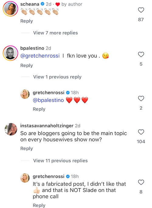 âItâs a fabricated post, I didnât like that ⊠and that is NOT Slade on that phone call,â Gretchen insisted.