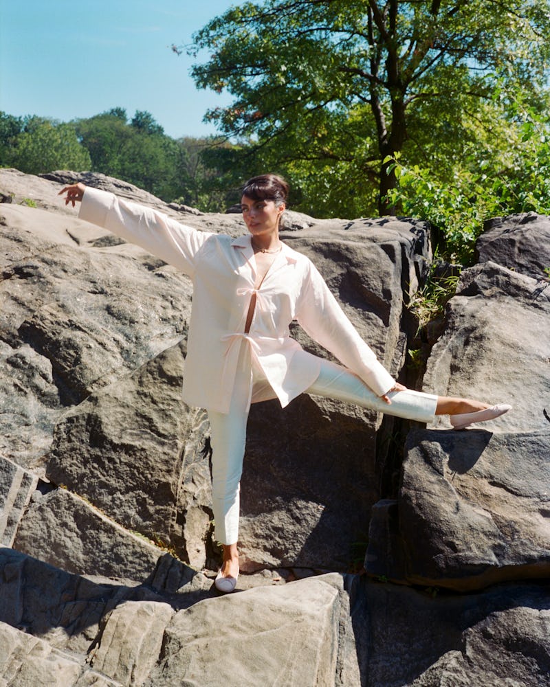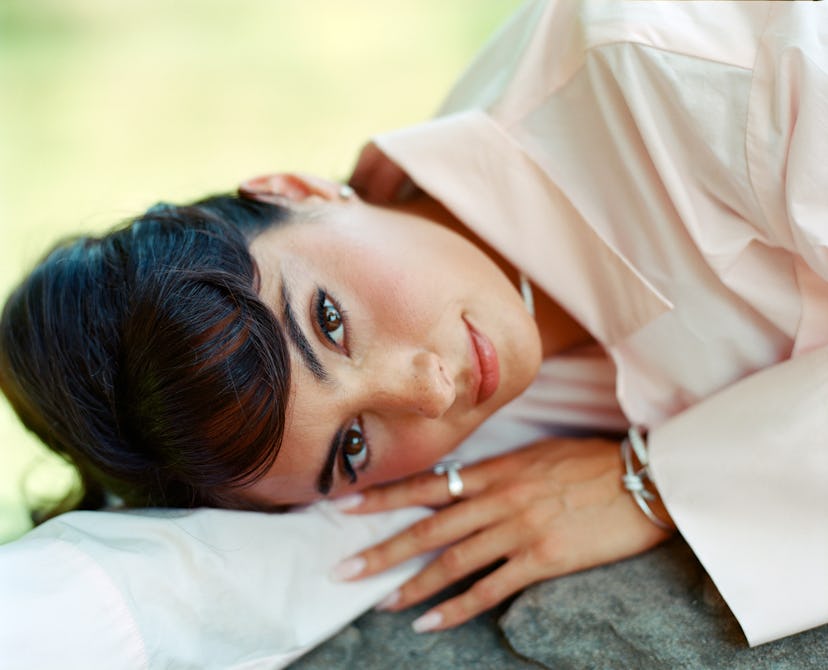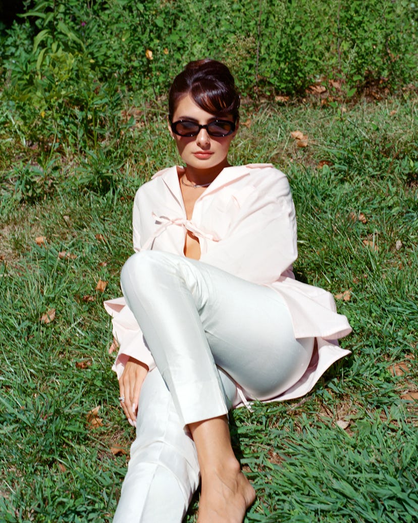 Like today’s pale pink nails, the list at hand is tidy, polished, and quite long. This is the way she’s been organizing her life since high school, she says. On the list du jour: this interview; a call with the staff of her new clothing brand, Daphne; a merch photo shoot with her